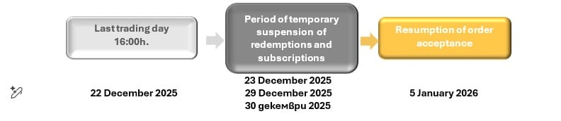 In accordance with the Law on the Introduction of the Euro (ZVERB) and the instructions of the Financial Supervision Commission (FSC), all issuance and redemption operations must be temporarily suspended in order to: